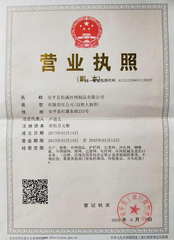 安平縣佰滿絲網(wǎng)制品有限公司 手機(jī):137-8418-8665 電話:0318-7526851